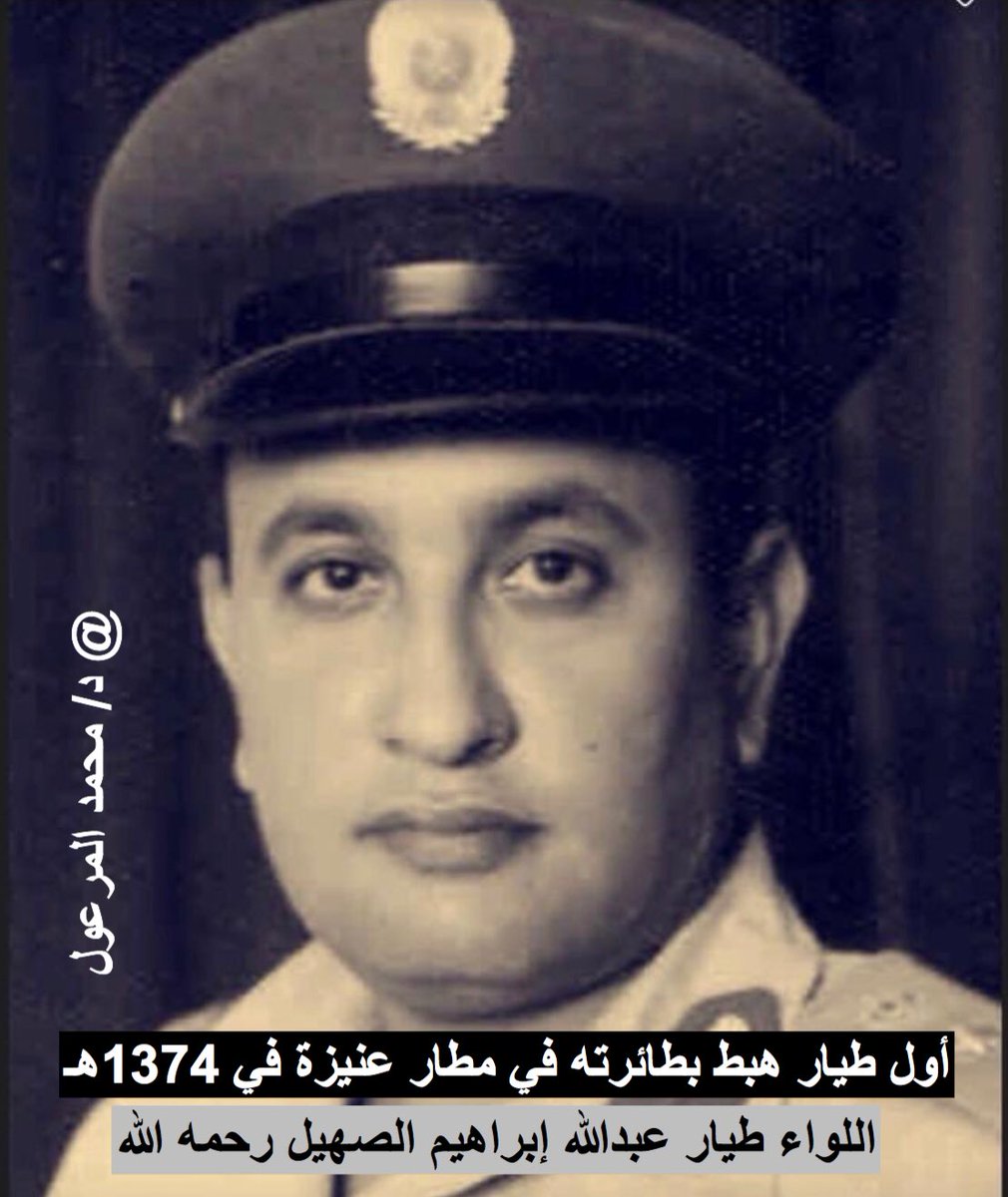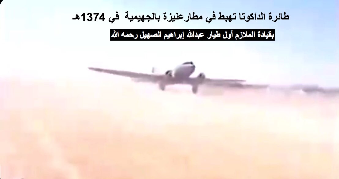 4️⃣يعتبر أبن عنيزة الطيار الحربي عبدالله الصهيل أول طيار يهبط بطائرة الداكوتا في مطار #عنيزة وذلك بموقع المطار بالجهيمية في27محرم 1374هـ عندما كان برتبة ملازم أول طيار حيث كانت تُقل الطائرة وزير الدفاع الأمير مشعل بن عبدالعزيز ومرافقيه عندما قدم لحضور حفل إفتتاح المطار