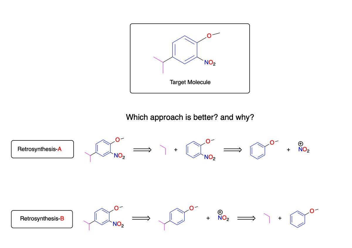 ٣. بعض المجموعات الكيميائية صعب اضافتها، فالأفضل أن تبدأ بالمركب وعليه تلك المجموعة. يتبع