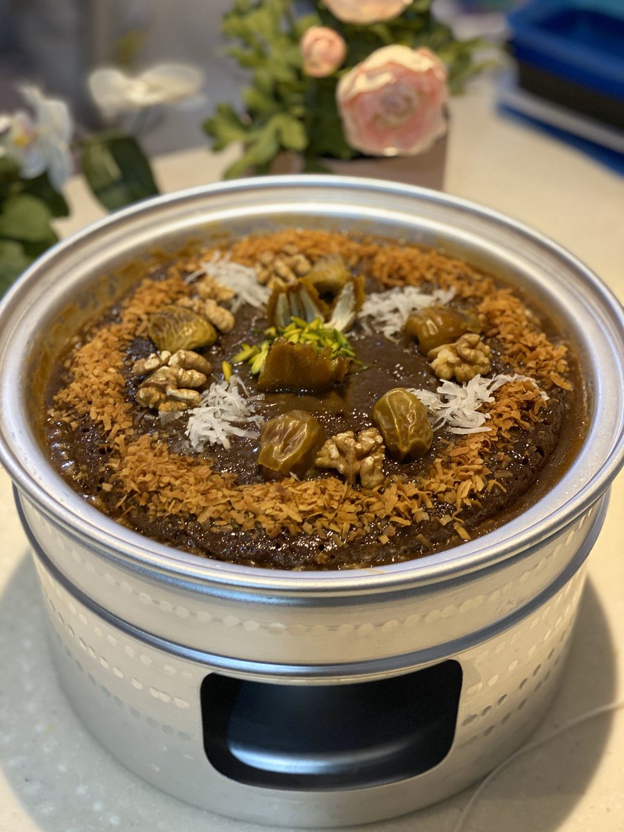 ٦- سخان كيكة التمر من حساب chef_tesam على انستقرام وتقديمهم للكيكة بطريقة قريبة من الحنيني في الطعم.
