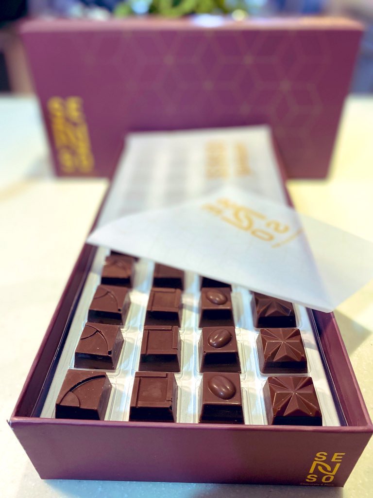 14- صندوق الشوكلاتة من سينسو واللي يضم ٤ نكهات (سولتد كارمل/كابتشينو/روشيه/كرنشي ويڤر) وجمعها ملغمة بحشوة واضحة ولذيذة. ( خصم ١٠٪ لحاملين الصورة بكود السناب حتى اليوم الوطني)
