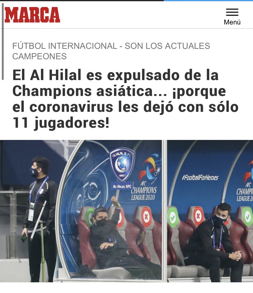 #الهلال السعودي الفريق الذي لم يهزم و تصدر مجموعته وجد نفسه خارج دوري الأبطال بسبب إصابة أكثر من 19 لاعبًا بفايروس كورونا .