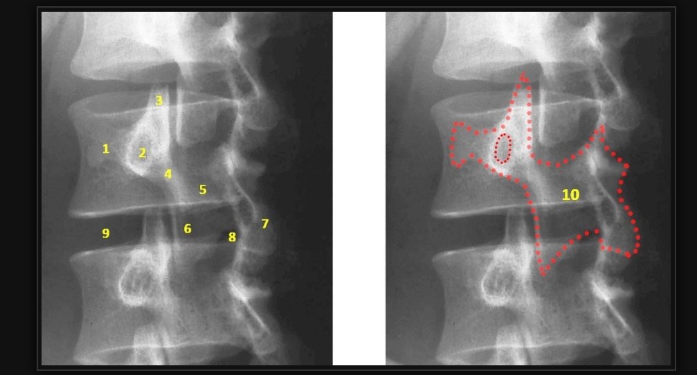 وتظهر في تصوير العمود الفقري في الوضع المائل