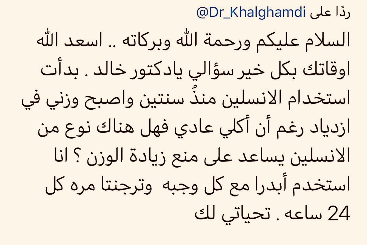 #الأنسولين من أدوية علاج #داء_السكر يزيد الوزن لا بد أخذ ذلك في الاعتبار عند وضع خطة العلاج لمرضى داء السكر النوع الثاني في ظل وجود أدوية أخرى لعلاج داء السكر تساعد على أنقاض الوزن سواء أخذها وحدها أو مع الأنسولين⬇️