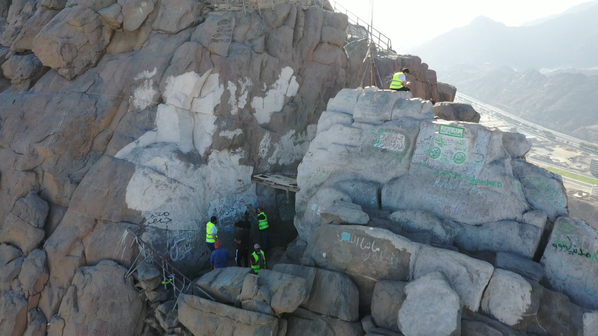 22-الكتابات والرسوم المشوِّهة التي أزيلت من #جبل_النور بلغت أكثر من (180) موقعًا في الجبل #مبادرة_العناية_بجبلي_حراء_النور_وثور