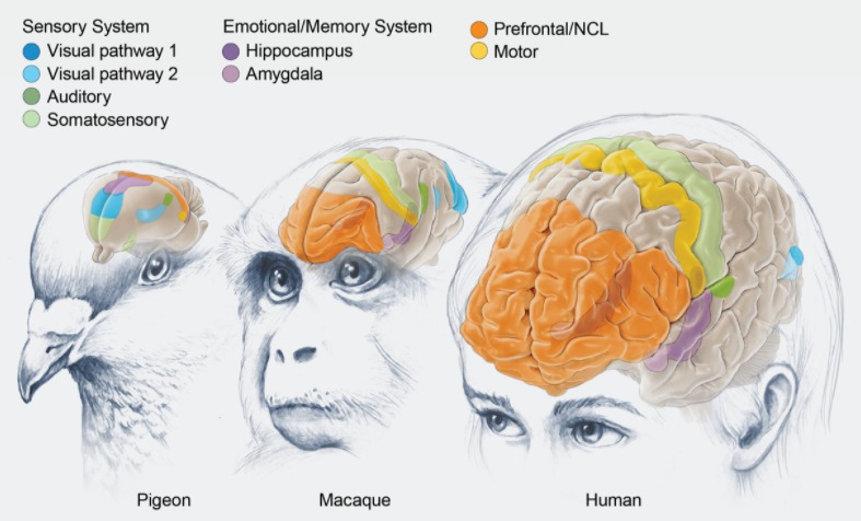 هسا بدنا نبدأ نحكي عن الحيوانات الي عندهم دماغ. بس عالسريع خليني احكي عن أجزاء الدماغ الأساسية حتى نعرف وين بصير الاختلاف.
