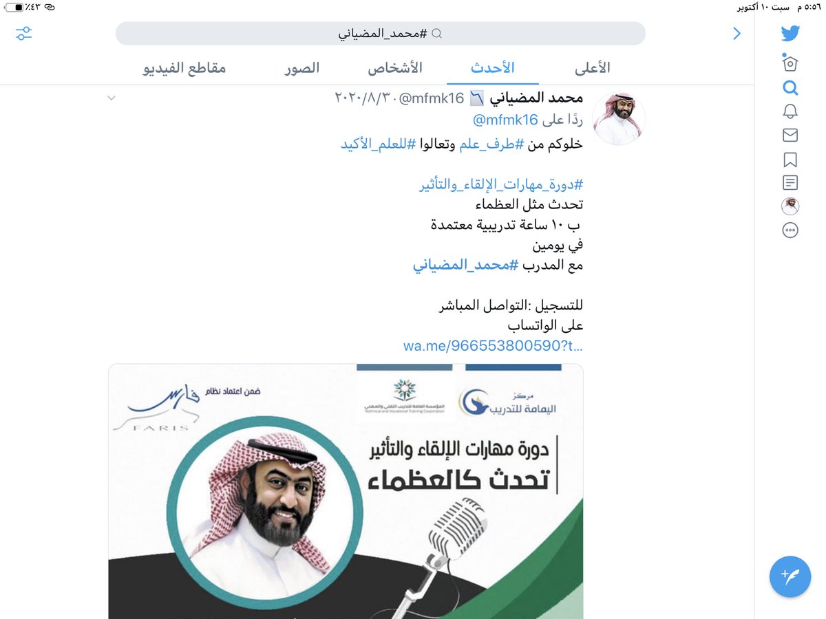 ثامنا-شارك في المواقع بكل شيء يهم التدريب حتى تُعرف بذلك ، اكتب وغرد عن موضوعات تخص #التنمية_البشرية و #تطوير_الذات وانشر مقالات ، ادعم مدربين بالنشر لهم 🔁👍