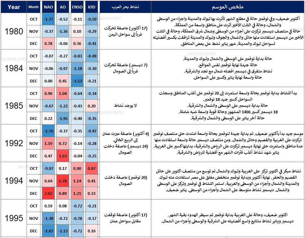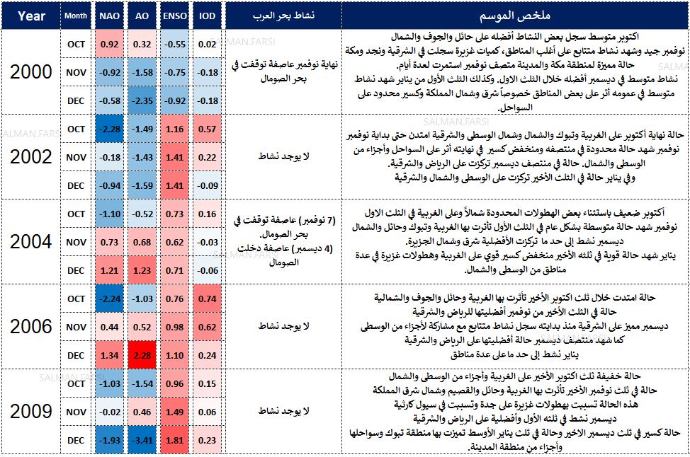 المواسم ١٩٩٢ و ٢٠٠٠ و ٢٠٠٩ ربما تعتلي القائمة ولو أضفناها لقائمة الأعوام المميزة لأستحقت. وهذا الأمر ليس نقطة تستحق التوقف لأن هدفنا في المقام الأول هو دراسة ظروف الغلاف الجوي المصاحبة وليس دراسة ترتيب أفضليات المواسم. فكل الأعوام المميزة والجيدة سوف نتناولها في إطار الخصب.