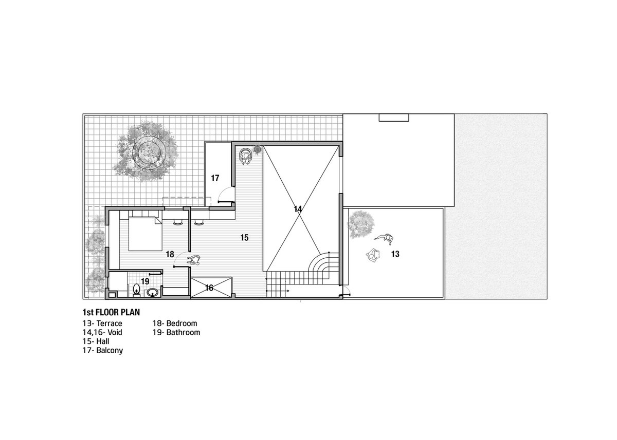 كما يلاحظ ان الواجهة الجانبية تكاد تكون مصمته تماماً لكون هناك مباني مجاورة في المستقبل