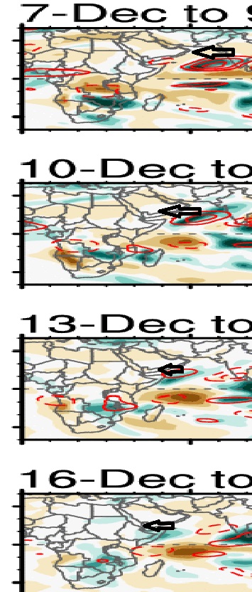 ويرجع السبب لتوقعاته الى تقدم الكتلة الرطبة mjo لمنطقة 1 ثم 2 حيث ستتدفق الرياح الشرقية الرطبة كما ذكرنا في تغريدات سابقة تنتج موجة روسبي مايزيد من فرصة حالات مداريه ببحر العرب