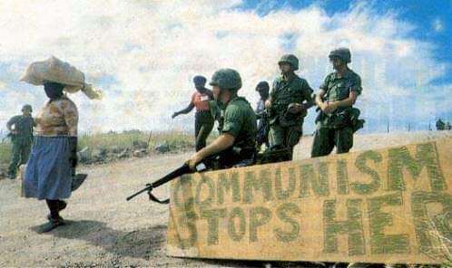 كانت ذريعة ريجان التبريرية لغزو الجزيرة بأن مئات طلاب الطب الأمريكان الذين يدرسون هناك معرضون للخطر ولكن الحقيقية الاستراتيجية التي نفذتها إدارة ريغان كان هدفها تقويض الحكومات الثورية في الكاريبي وبلدان أمريكا الجنوبية.