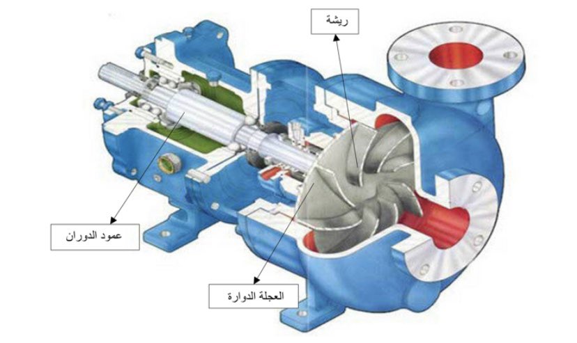 تتكون المضخة من ثلاثة أجزاء أساسیة: -عمود الدوران