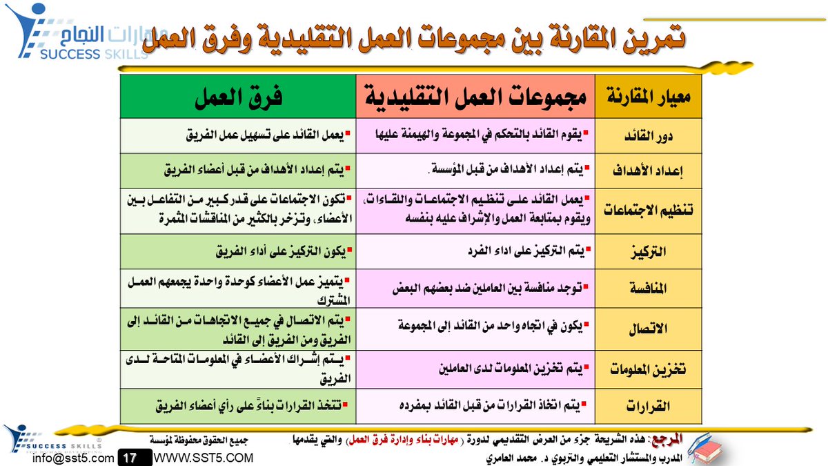 إن المقارنة بين مجموعات العمل التقليدية و #فرق_العمل توضح لنا أنه ليست كل مجموعة عمل هي بالضرورة #فريق_عمل