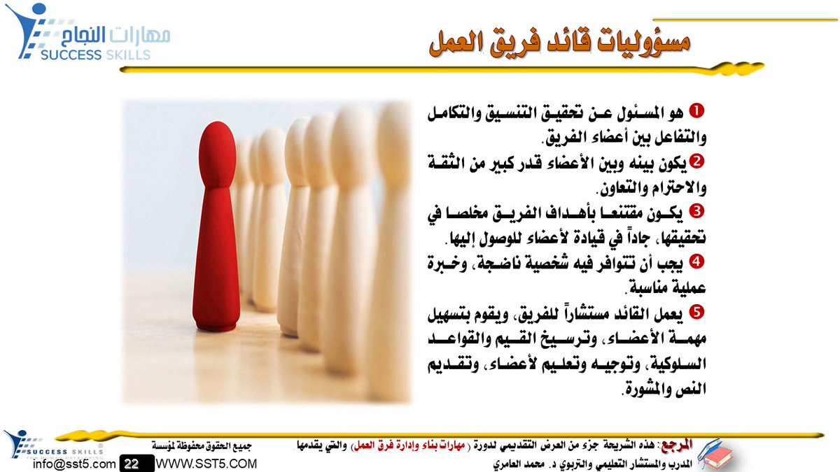 تعرف معنا على مسؤوليات قائد #فرق_العمل وتأمل كل مكون من هذه المكونات
