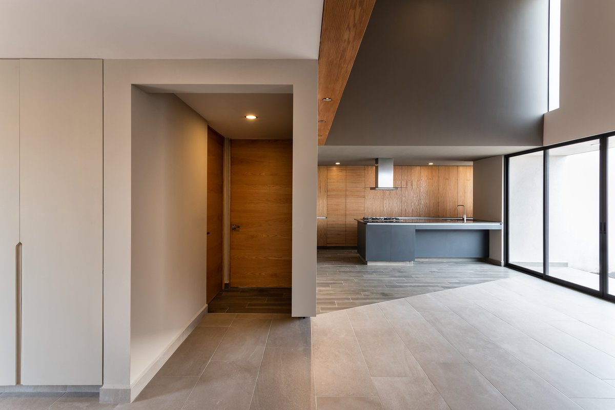 لاحظ علاقة الدرج بالصالة , لاحظ علاقة المطبخ بالصالة