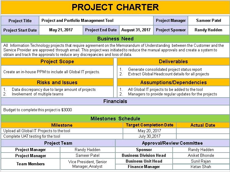 إذا تم إنشاء الميثاق بشكل صحيح،فإنه يساعد التنفيذيين ع رؤية القيمة التجارية للمشروع.يمكنهم الرجوع للميثاق لفهم توافق المشروع مع الاستراتيجيات