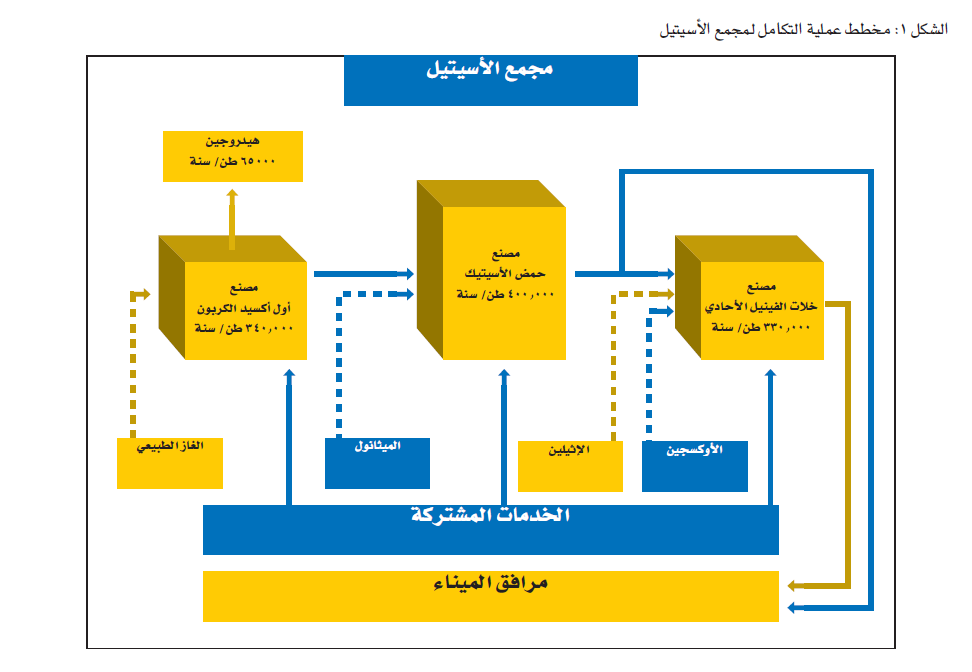 يستخدم حمض الاسيتيك كلقيم لإنتاج أسيتات الفينيل الأحادي والتي تقوم بإنتاجه الشركة العالمية لخلات الفينيل المحدودة والتي تأسست عام 2006م برأس مال 676000000 ريال سعودي وتمتلك سبكيم 87% من رأس مالها ويستخدم أسيتات الفينيل الأحادي كلقيم لإنتاج أسيتات البولي فينيل وكحول البولي فينيل.