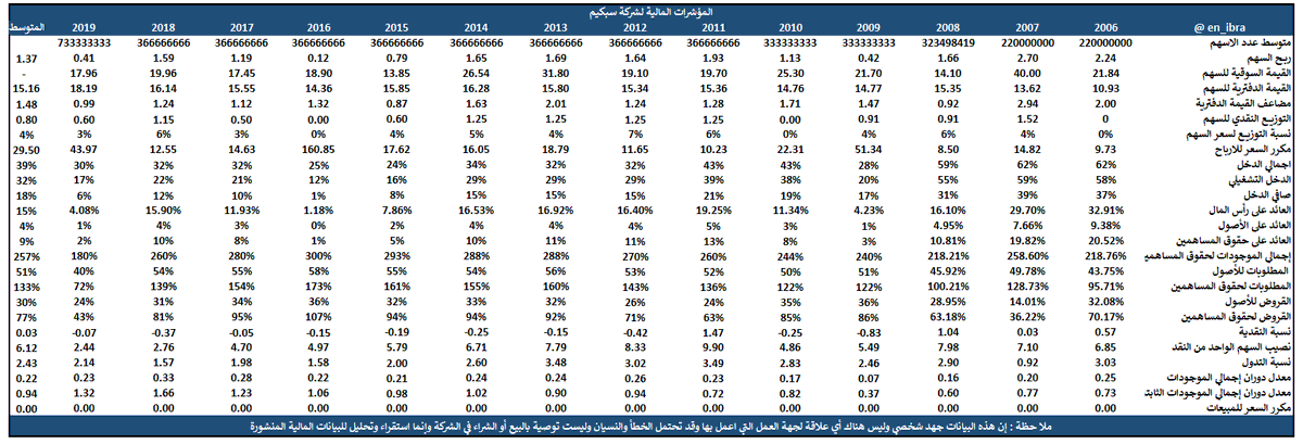 المؤشرات المالية وهي أهم مافي هذا الثريد وسوف استعرض معكم أهم المتوسطات للفترة من 2006-2019: