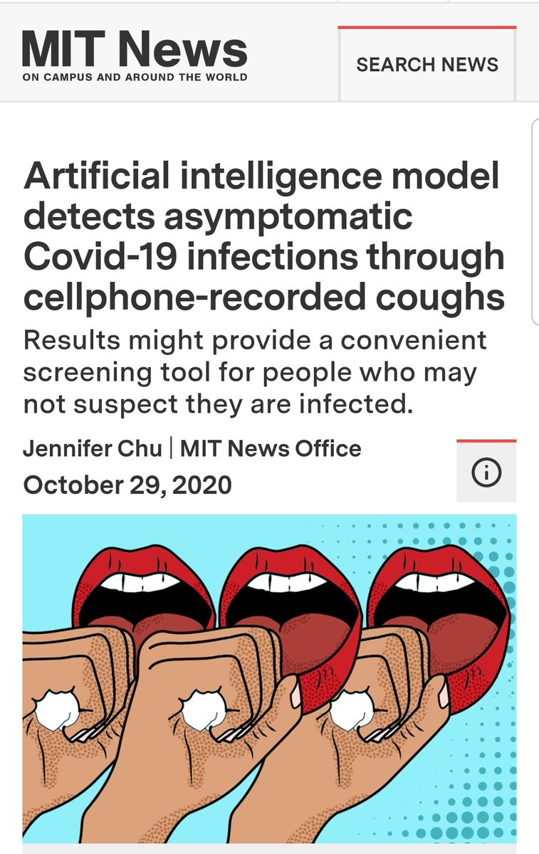نتيجة البحث الجديد من المعهد الأمريكي الشهير MIT (Massachusetts Institute of Technology) تكتسب أهميتها من الأمل في إصدار تطبيق موبايل مجاني يتيح الكشف عن إصابتك بالكوفيد-19 إن كنت مصابا بلا أعراض Asymptomatic