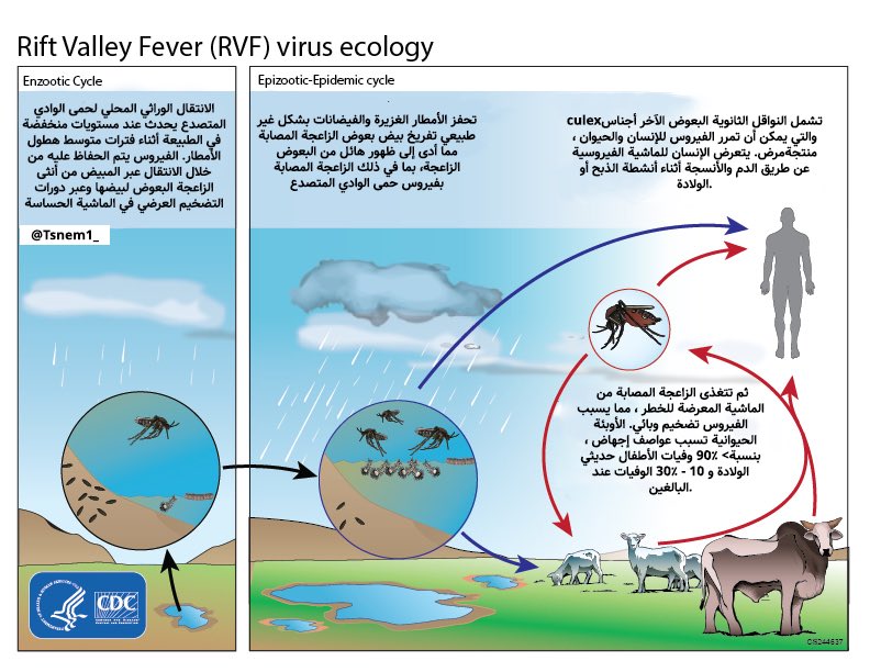 ثريد: رح أتكلم فيه عن مرض "حمى الوادي المتصدع" اللّي ظهر عام ١٩٩٩م بجنوب المملكة تحديداً في منطقة جازان وتم القضاء عليه بتطويق المنطقة ومنع الدخول والخروج منها حتى تم حصر المرض ومنع انتشاره عام ٢٠٠١م مُخلفاً ١٢٢ حالة وفاة و ٨٦٨ حالة إصابة #riftvalleyfever