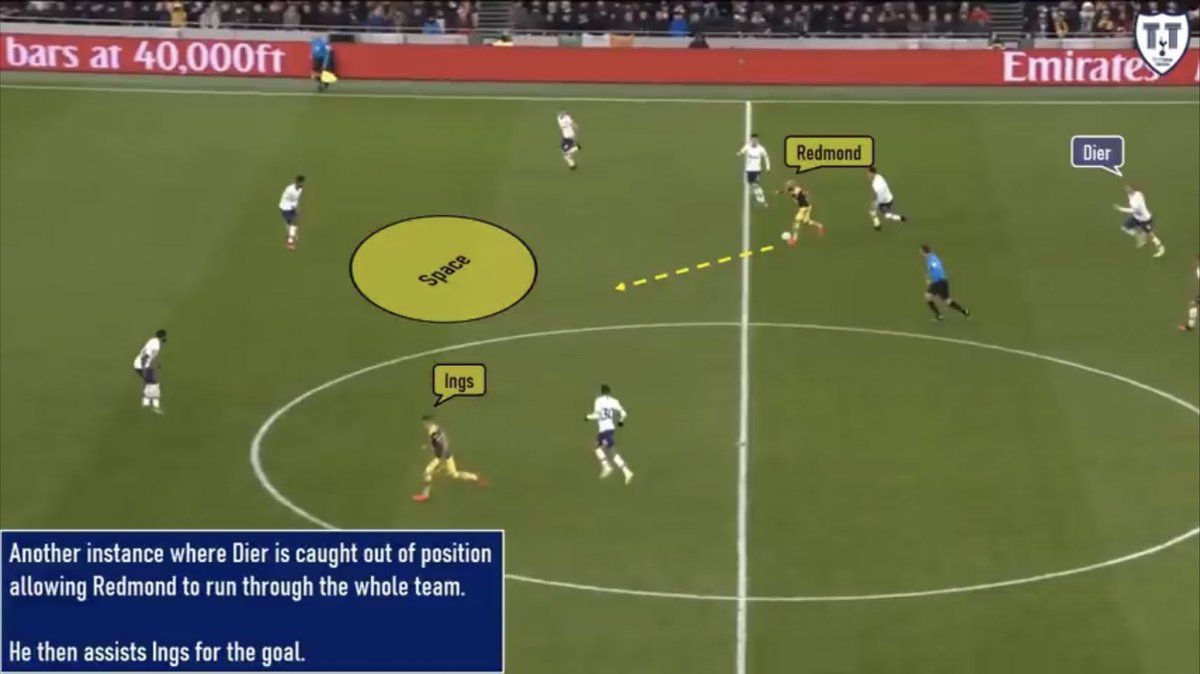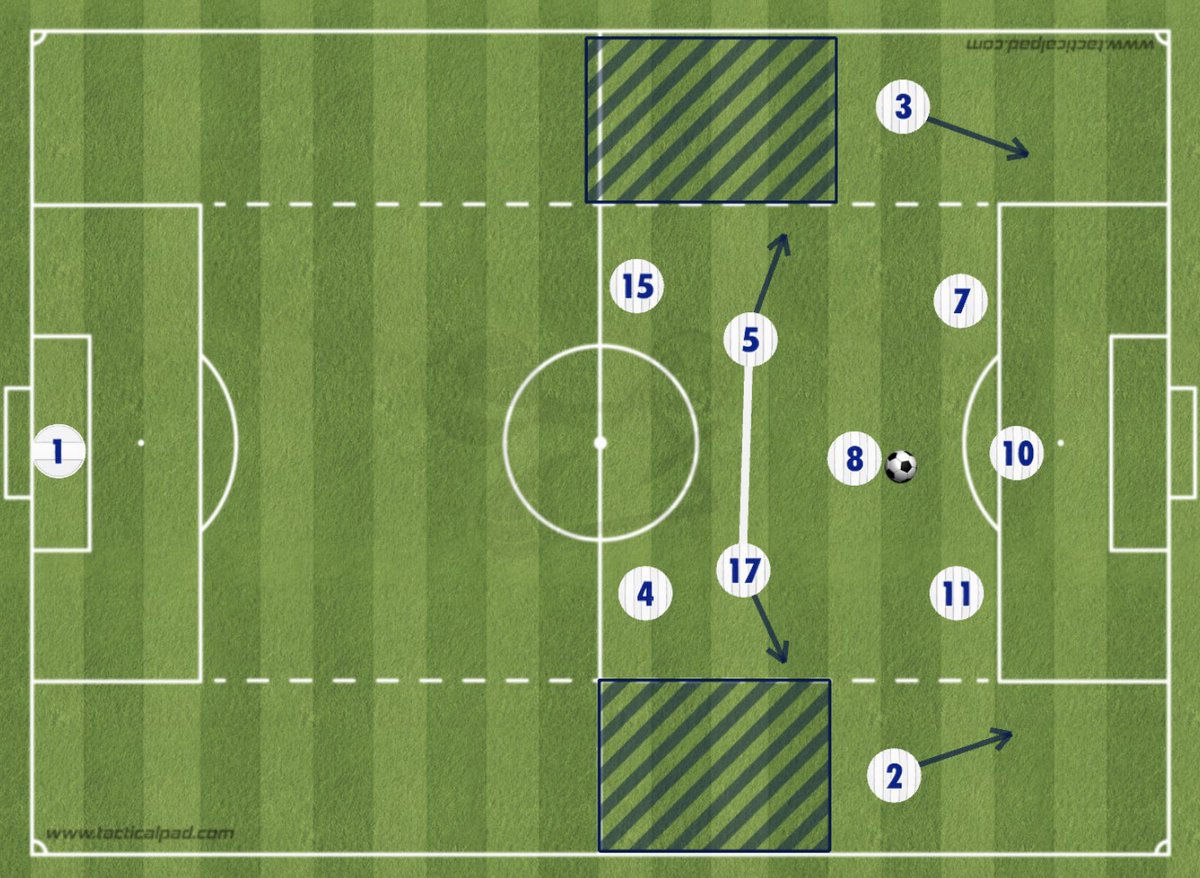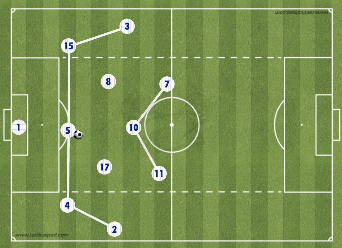 #مورينيو عنده فكرة واضحة وهي وجود اربع لاعبين تحت الكره في مرحلة البناء والتحضير، الموسم الماضي طبقها بصعود ظهير واحد مع انضمام الظهير الاخر لقلوب الدفاع ليكوّن خط ثلاثي امامهم محور الارتكاز لتتكون اطراف الفريق من اورييه - سون