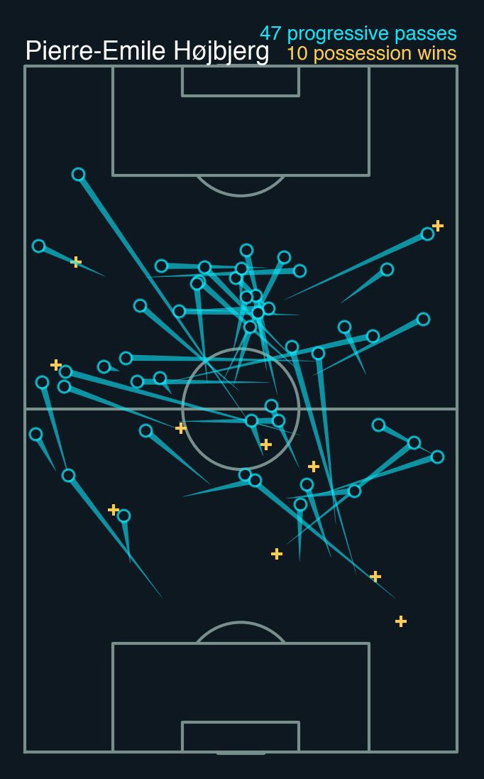 #هويبيرج قدام برايتون قدم احد اعظم مبارياته على الاطلاق من جميع النواحي من افتكاك واعتراض الكرات والاهم تحريك وتوزيع اللعب حيث مرر 47 تمريرة تقدمية Profressive Pass ( تمريرة للامام ) اكثر من اي لاعب اخر في المباراة.