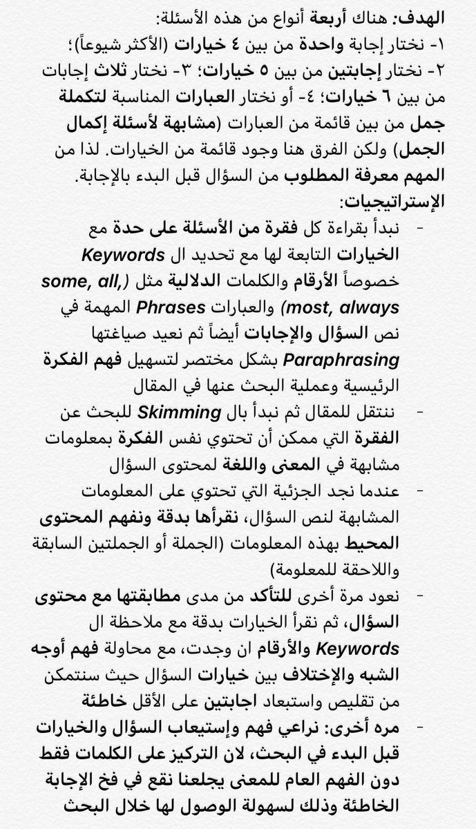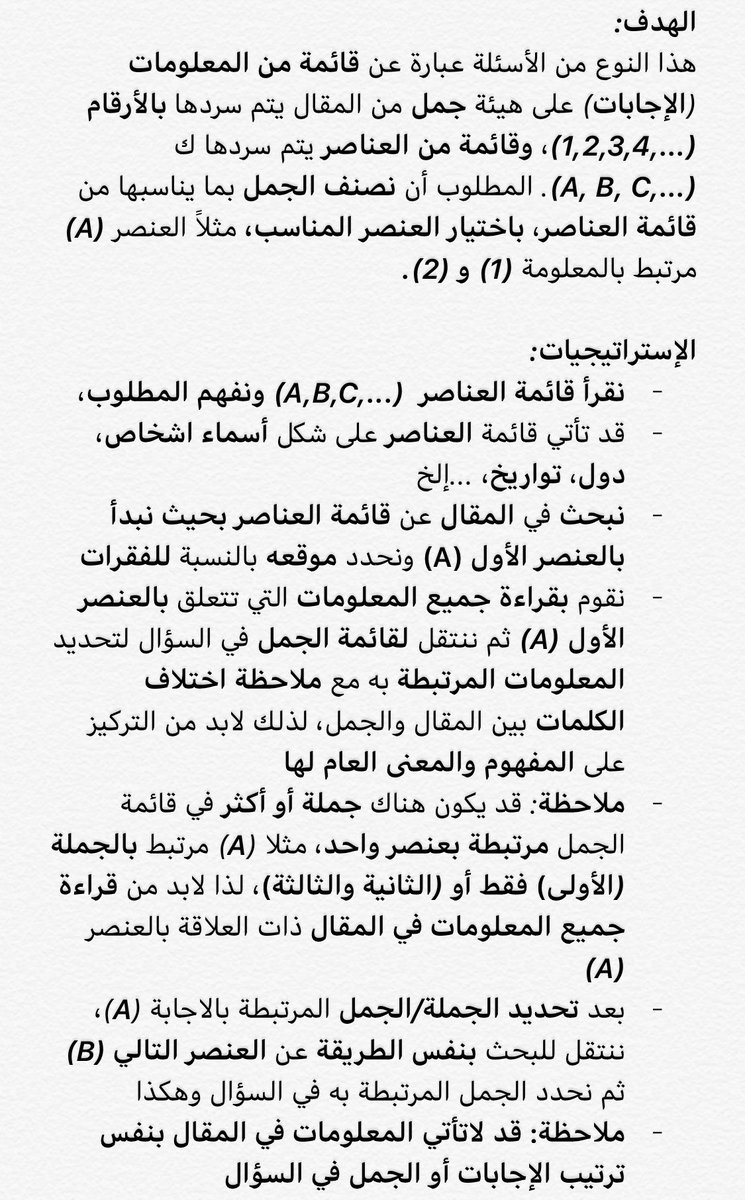 لذا معرفتك بأنواع الأسئلة (١٤ نوع) والتدرب على استراتيجيات حلها، تمكنك من تحقيق تقدم جيد. لذا سأقوم كل يوم بطرح نوعين من الأسئلة مع استراتيجيات الحل الصحيحة