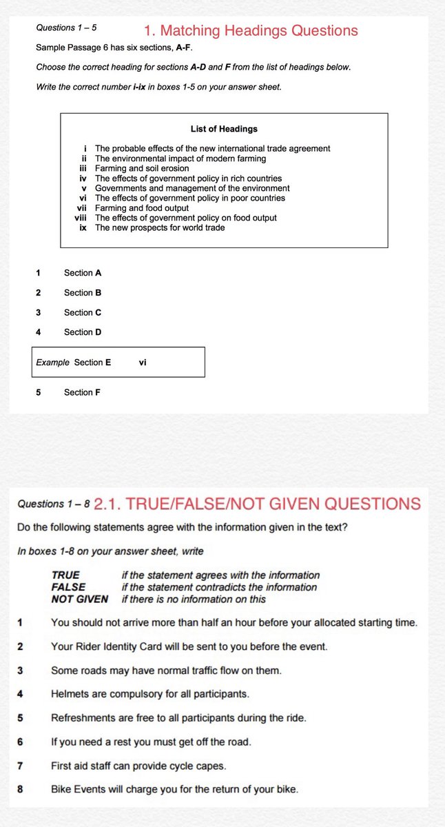 نماذج لأسئلة إختبار القراءة #ايلتس ٢