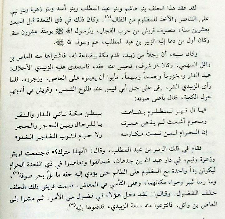 لقد شهدت في دار عبدالله بن جدعان حلفاً لو دعيت به في الإسلام لأجبت، تحالفوا أن يردوا الفضول على أهلها وألا يعز ظالم مطلوماََ.