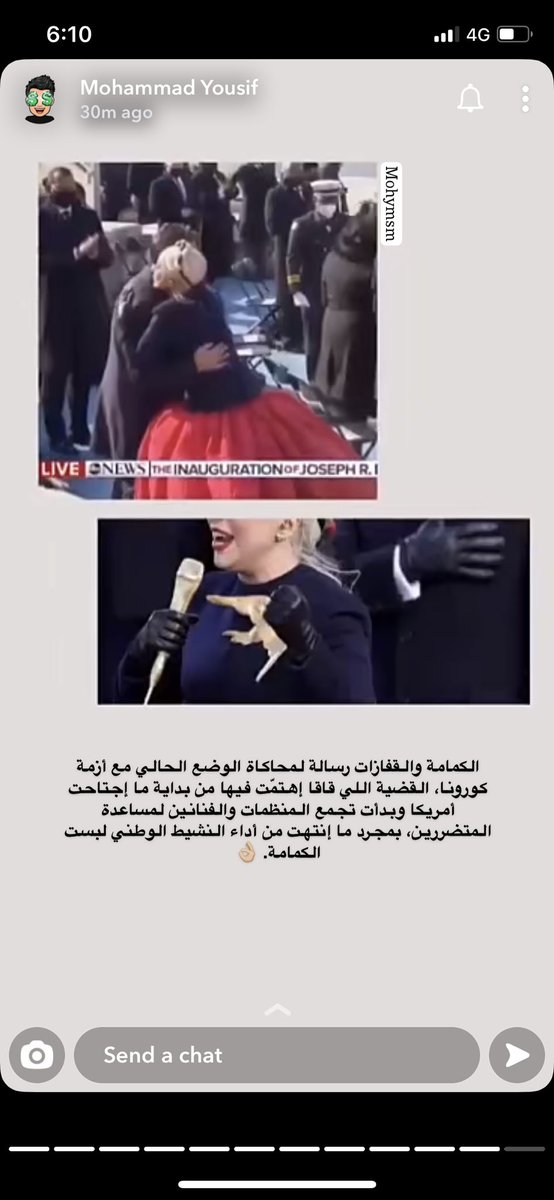 بالرغم ان ليدي قاقا شخصية غير سياسية لكن كان لها دور قوي في دعم الإنتخابات و دعم فوز الرئيس الجديد و أكتمل دورها بإحياء حفل التنصيب ، و لبسها كان لا يخلو من الرموز والرسائل و أتكلم عنها الرائع محمد يوسف بشكل مُفصل
