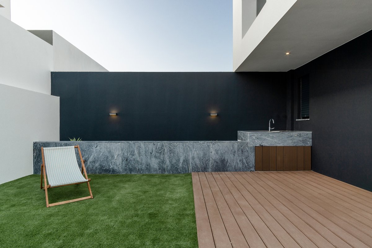 أما الفناء الخلفي وظيفي من الدرجة الأولى , بسيط وجميل ويحقق الغاية بكل اقتصاد !