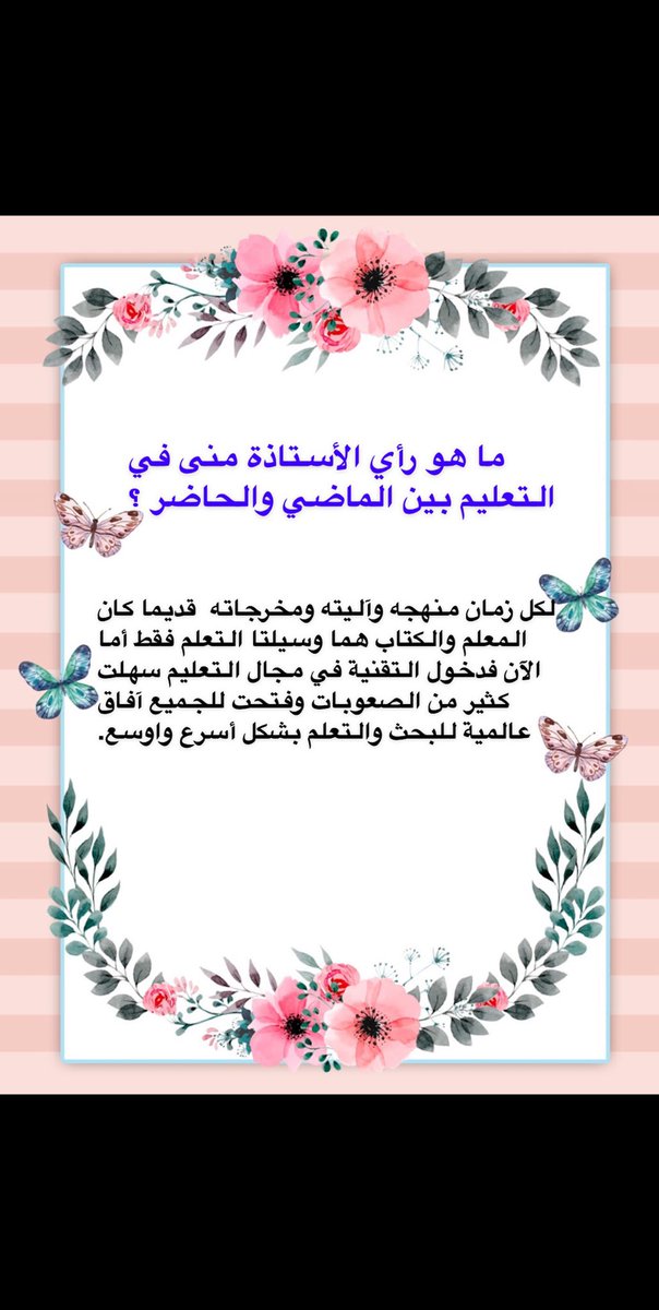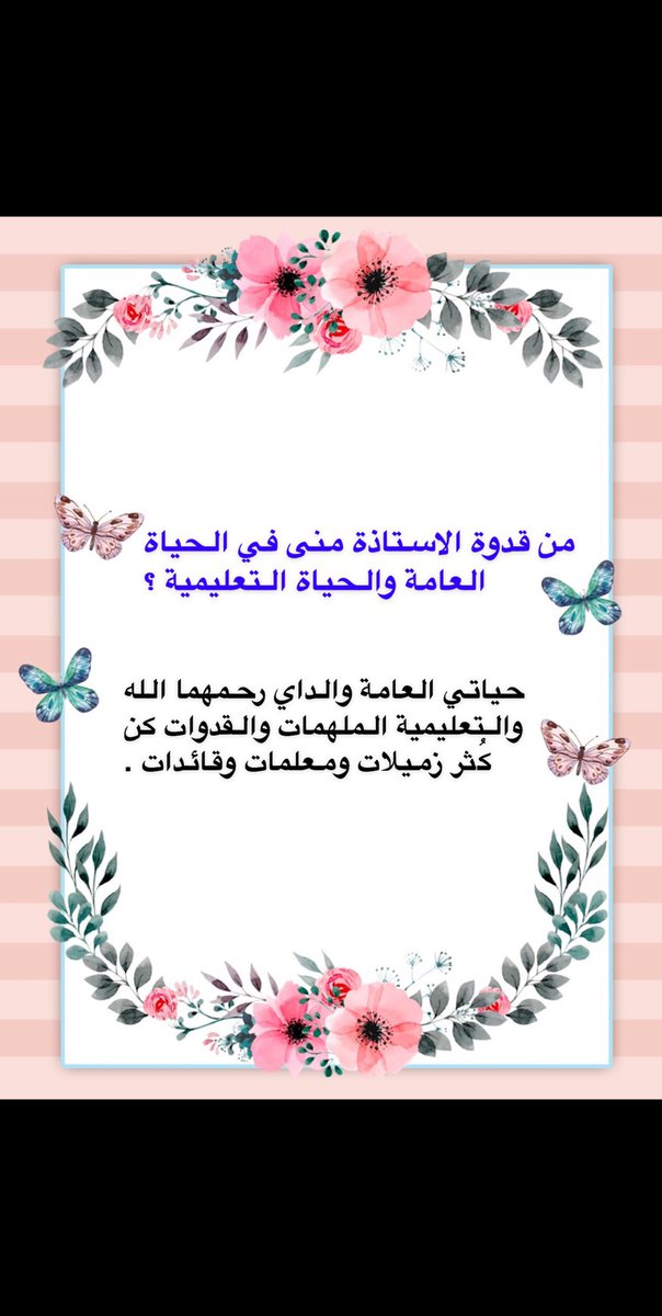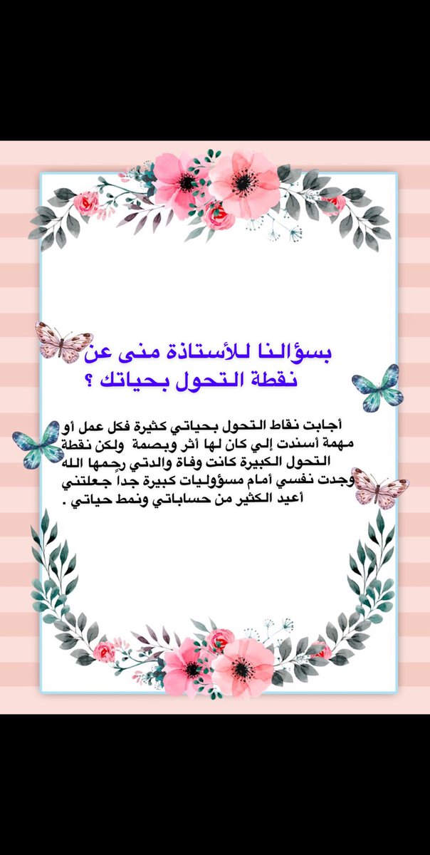 وأخيراً كل الشكر للأستاذة منى التي منحتني هذه الفرصة واتمنى لها حياة سعيدة مع دوام الصحة والعافية .