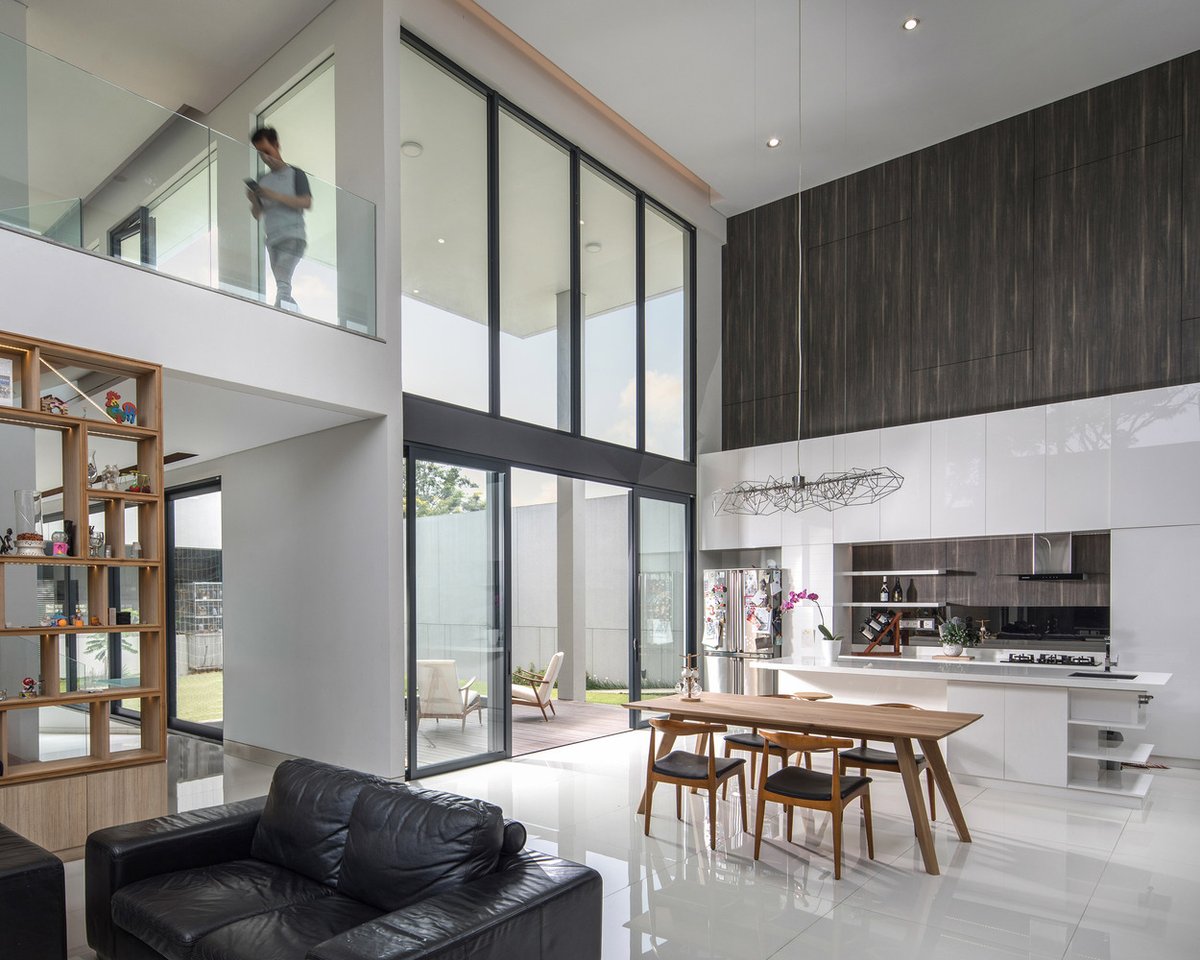 إن الإرتفاع المضاعف في صالة المعيشة أحد أهم العناصر في صناعة تجربة مختلفة ,,,