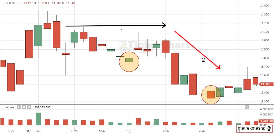 2. ظهور نمط الشمعة الحمراء القصيرة في مسار هابط