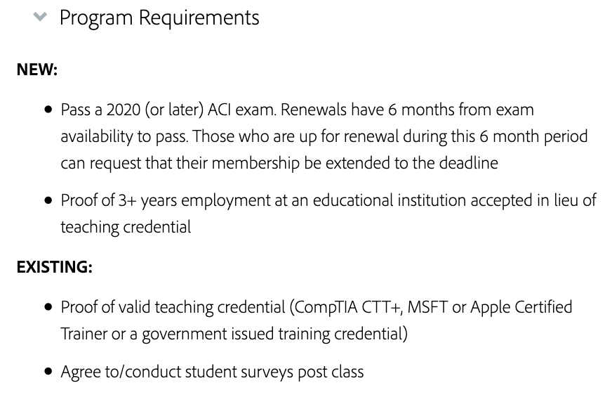 سواء حاب تكون مدرب معتمد من Adobe واللي تحمل اختصار (ACI) وتعني Adobe Certified Instructor أو عندك مركز تدريب وحاب أيضاً أن يكون معتمد من Adobe واللي يحمل اختصار (AATC) وتعني Adobe Authorized Training Center