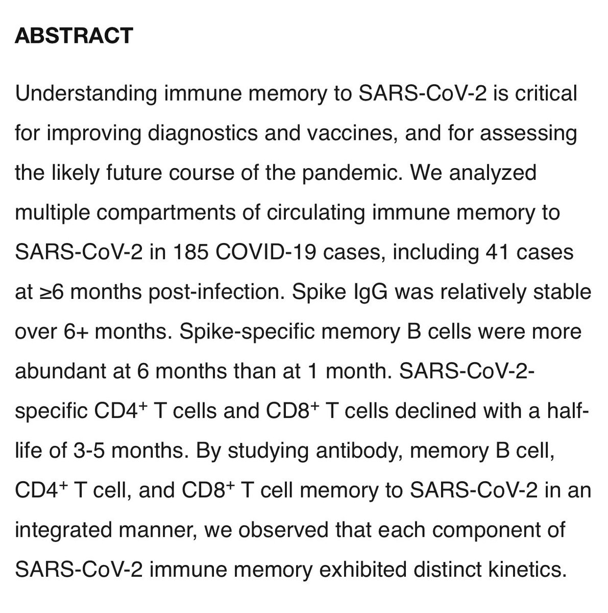 ان الخلايا البائية المسؤولة عن انتاج الاجسام المضادة زادت بعد ٦ شهور من الاصابة