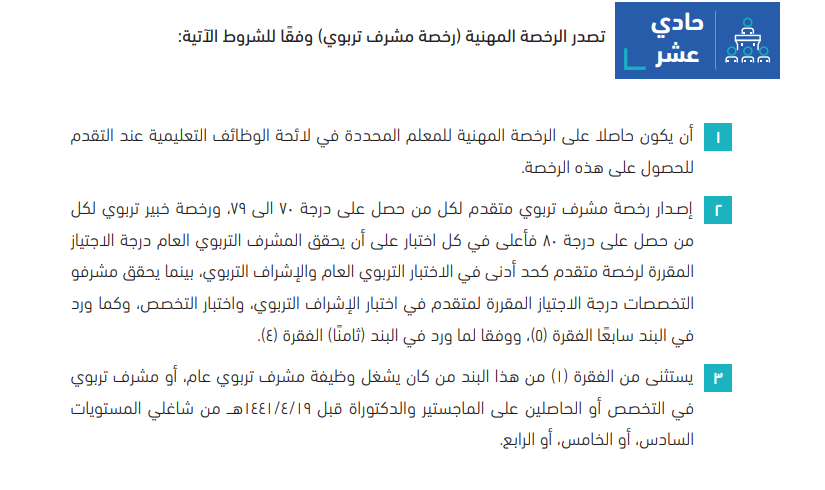 عدد الوظائف المباشرة في الإرشاد الطلابي قليلة جدًا ولا تُقارن بعدد وظائف التكليف بالإرشاد الطلابي ، مما يستدعي إعادة النظر في ضوابط الرخصة المهنية لاختبار الإرشاد الطلابي تحقيقًا للفائدة المرجوة من وجود الرخصة المهنية في زيادة القدرات المعرفية للمختبر .