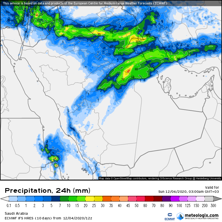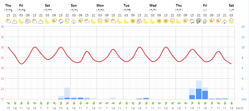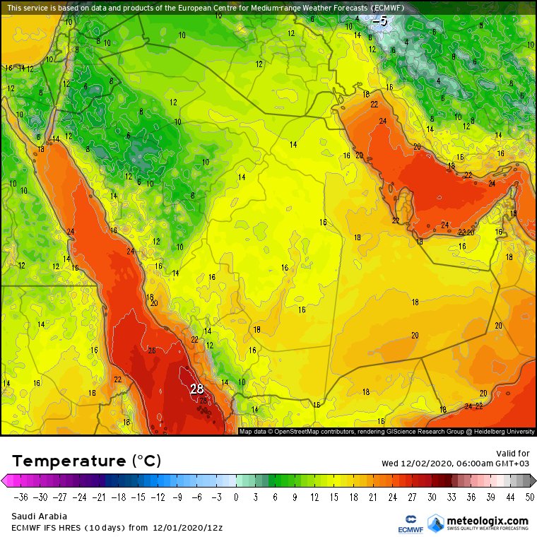 يوم السبت والأحد والإثنين والثلاثاء والخميس والجمعه فرصة هطول أمطار وأقل درجات الحرارةالمتوقعه هي 22فجر #يوم_الجمعه غداً وتلامس ال30 ظهيرة الجمعة والسبت وتنخفض 27 الأحد والإثنين والثلاثاء 30 وأيضا الاربعاء وتقل عن 30 الخميس القادم بمشيئةالله