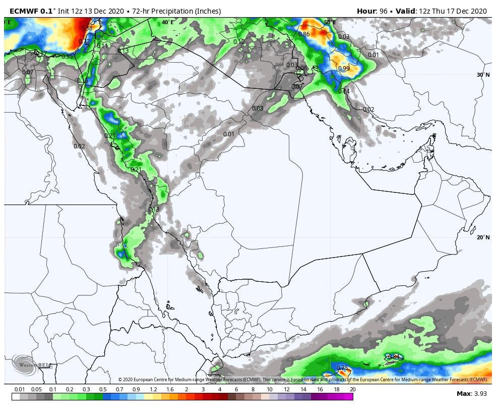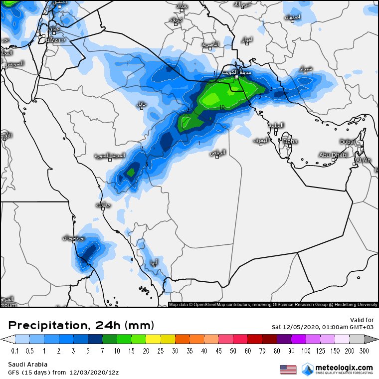 توقعات الحالة ل 72 ساعة القادمه بمشيئة الله من النموذج الاوربي