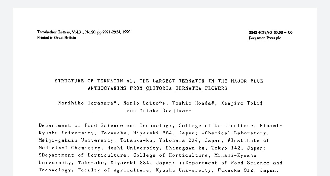 #الشاي_الأزرق #الكيمياء_من_حولنا هل تعلم أن هناك نوع من الشاي يعرف باسم الشاي الأزرق؟ تنتشر زراعة الشاي الأزرق في دول جنوب شرق آسيا كتايلاند وفيتنام ويكتسب الشاي الأزرق لونه من محتواه الكيميائي من الأنثوسيانيات Anthocyanins وتحديداً مركبات التيرناتينات Ternatins التي تعد المسؤول