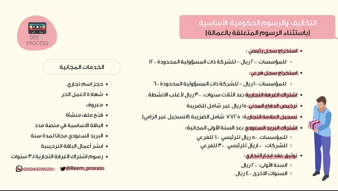 هذي #الرسوم_الحكومية الأساسية بدءً من استخراج السجل التجاري وانتهاءً ب #عقود #الايجار 🙏