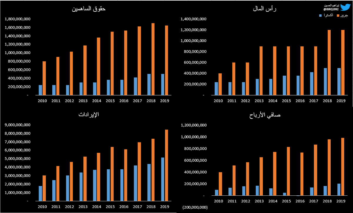 - القوائم المالية لكل من جرير واكسترا لفترة 10 سنين ومقارنة نتائج 2019م بمتوسط الفترة 📊