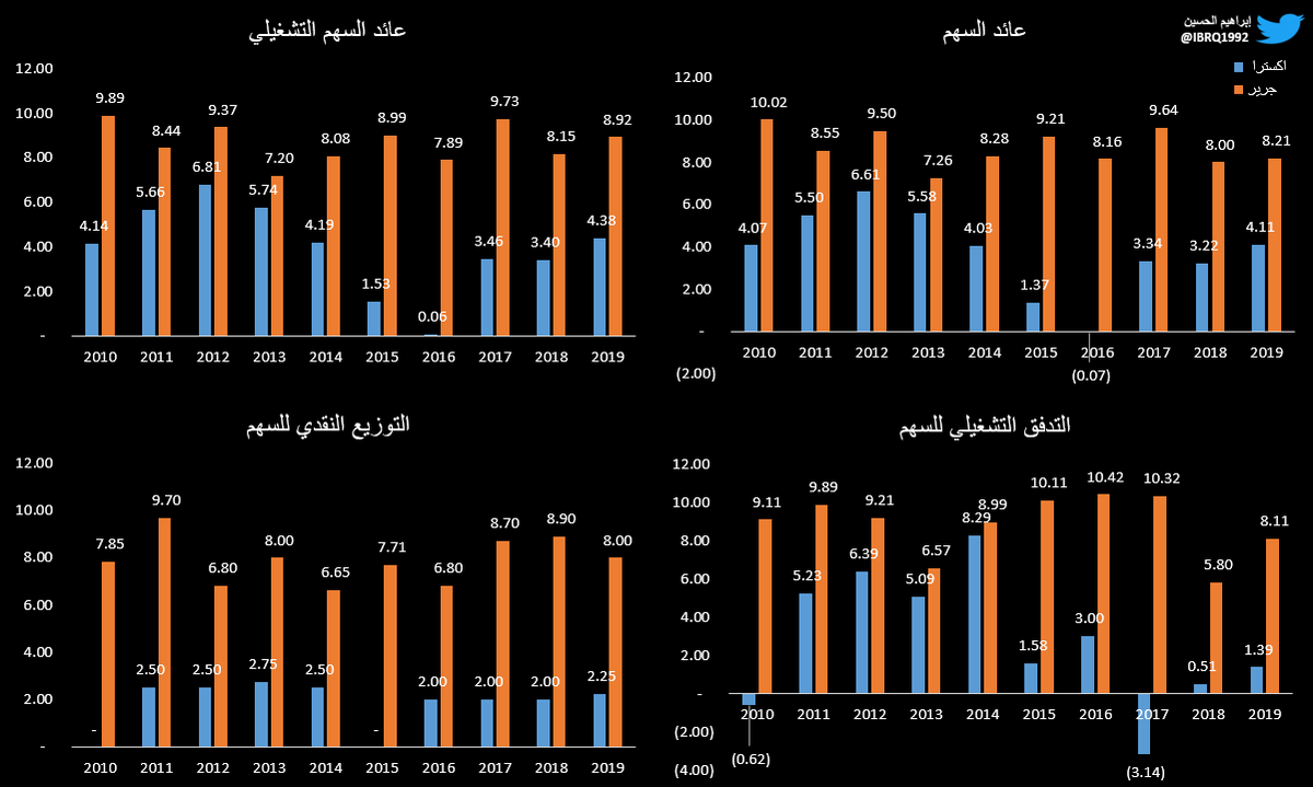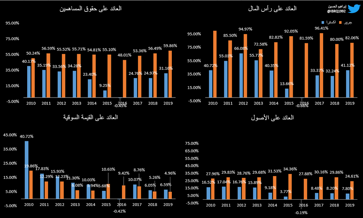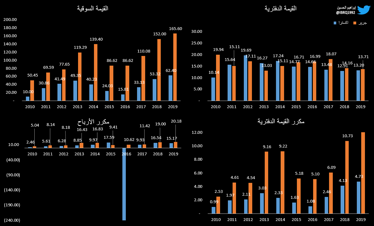 المؤشرات المالية لكل من جرير واكسترا لفترة 10 سنين ومقارنة نتائج 2019م بمتوسط الفترة 📊📊
