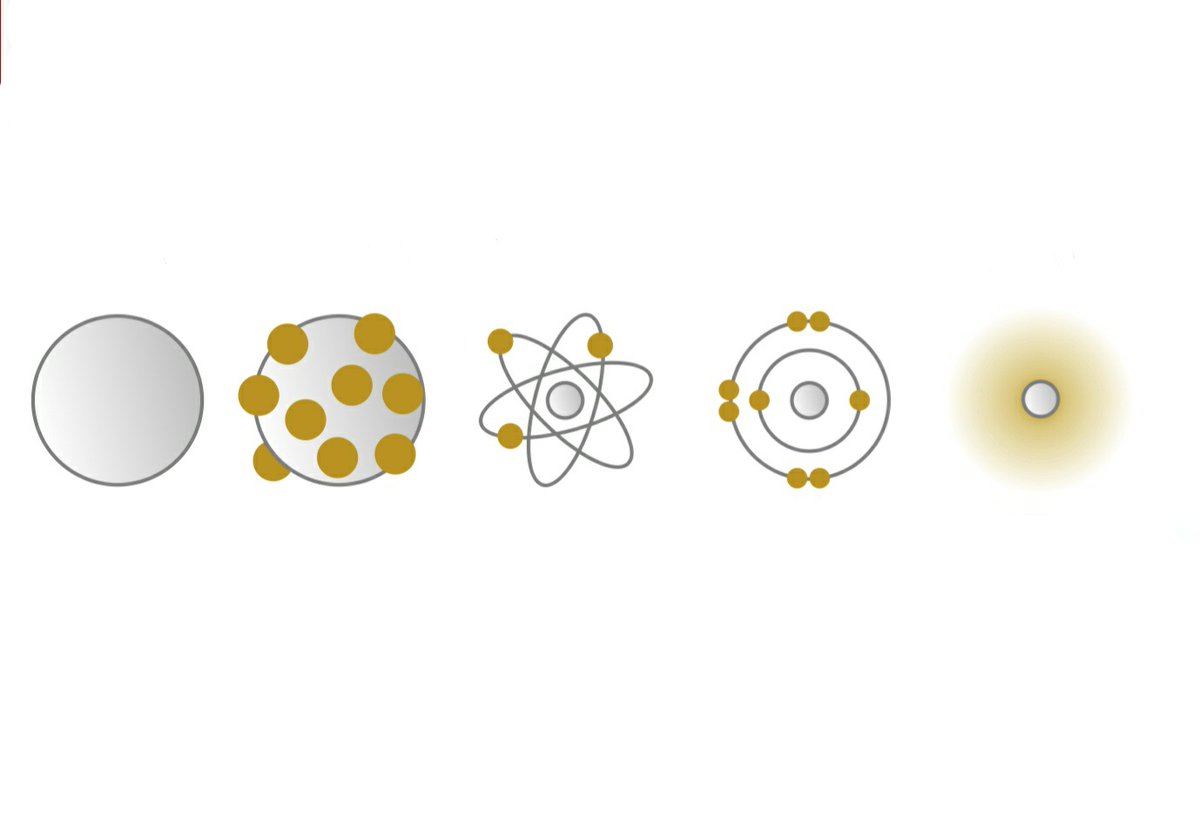 - لا تتحرك الإلكترونات حول النواة في مدارات، بل توجد في مستويات طاقة معينة على شكل سحابة.