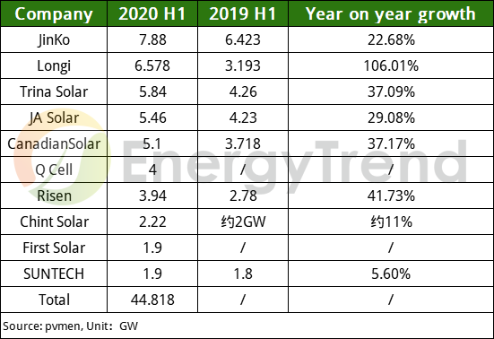مقارنة حجم المبيعات للألواح الشمسية في النصف الأول من 2019 و 2020 وفقًا لإحصائيات pvmen يؤكد زيادة نسبة مبيعات للألواح بمعدل 20 ٪ لشركات العشرة الأوائل التي حققت أعلى نسب شحن في أسواق #الطاقة_الشمسية بالرغم أن هذه الزيادة كانت في قمة أزمة كورونا.