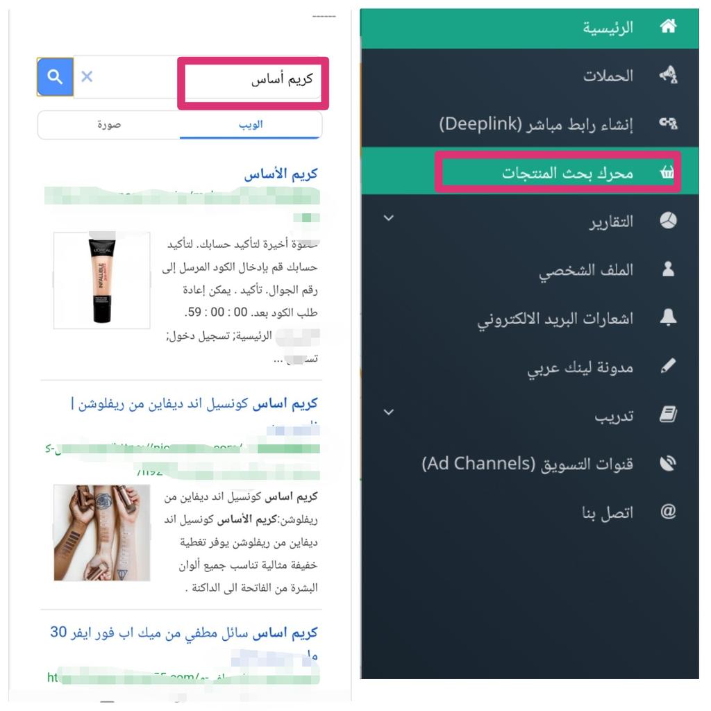 مثلا كريم اساس تظهر جميع المواقع اللي تبيع كريم اساس