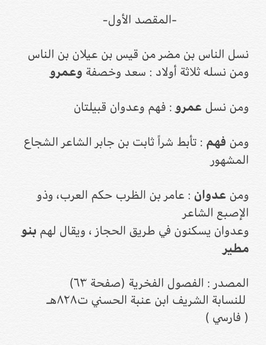 " دراسة وتحليل نص ابن عنبة في قبيلة مطير "