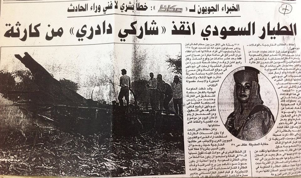 انتهت الكارثة التي تعدّ من أسوأ حوادث الطيران من حيث أعداد الوفيات بوفاة جميع من كان على متنها ، ولم يبقَ منها اليوم سوى التسجيل الصوتي الأخير الذي سجّله الصندوق الأسود للكابتن خالد الشبيلي وهو يستغفر الله ويردد الشهادة لحظة الاصطدام 💔.*