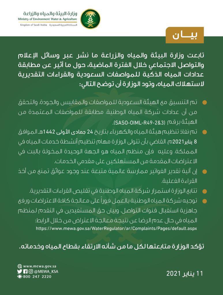 الفقرة الرابعة من البيان، كان الأولى بالوزارة متابعة التذمر الواسع لشريحة المشتركين من الفواتير ومبالغها المستمرة من سنوات وليست حالات فردية ومن ثمن تضع أصبعها على الجرح لا عين المشترك.