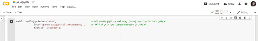 1. ال Optimizer : والذي يعتبر الخوارزمية الخاصة في تحسين النموذج أثناء مرحلة التعليم.