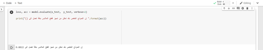 أنت الآن تمكنت من تصميم نموذج معزز بالذكاء الإصطناعي لديه القدرة على التمييز بين 10 قطع من الملابس وبدقة تصل الى 89% وهذه بداية موفقة في عالم الذكاء الإصطناعي ولكن لا تقلق هنالك نماذج خاصة للتعامل مع الصور تجعل من نموذجك أكثر ذكاءا بدقة تصل الى 99,9% وهذا سأعرضه لاحقا.
